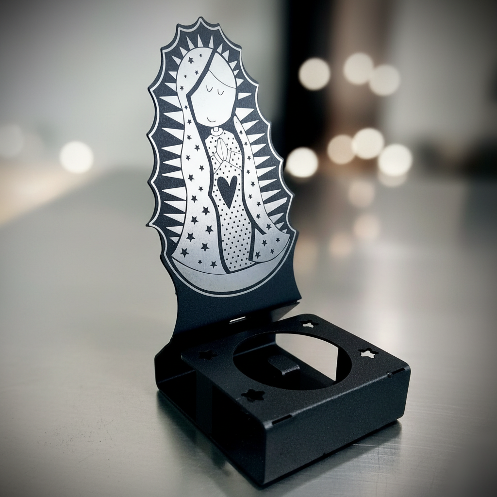 El Candelabro de la Virgen María – Luz de Protección es un elegante porta velas metálico diseñado para quienes desean iluminar sus espacios con un toque espiritual, artístico y devocional. Fabricado en metal resistente y trabajado con delicados detalles de la Virgen María, este portavelas es perfecto para crear ambientes de paz, meditación y recogimiento.